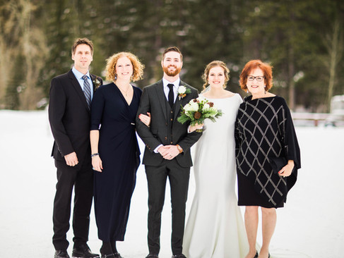 Christine and Connor could not have gotten more blessed with this January weather in Canmore. The roads and trees were covered with a fresh blanket of snow with just the perfect temperature outside for the snow to stay and not melt (and yet warm enough to let the happy couple spend lots of time outside taking portraits!) The ceremony and reception for this wedding took place at the Canmore Nordic Centre and for the bridal portraits, we headed to a close by private lake surrounded by beautiful mountains called Goat Pond. This was the very first wedding I shot in Canmore (2018) and it got me so excited for all the future winter weddings I would be able to capture for my clients. Thank you Christine and Connor for having let us be your wedding photographers for your beautiful mountain wedding at Canmore Nordic Centre!